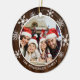 Beautiful typography-based holiday ornament. "It's the most wonderful time of the year" appears in white hand-lettered typography on a background accented with white snowflakes featuring a family photo.
