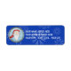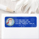 Holiday return address labels with a Santa Claus and blue background with snowflakes and white text that's easy to customise.