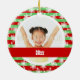 A festive and fun Christmas decoration with a pattern of white snowflakes and "red and green" stripes which frame two photo templates for your personal photographs. CUSTOMIZE IT - Change the wording on the horizontal band to make it unique. IDEAS AS - Stocking stuffers for friends, couples, family and loved ones this holiday season.