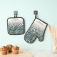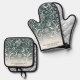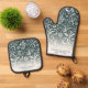 Snowflake Swirls On Dark Green Custom Christmas Oven Mitt & Pot Holder Set