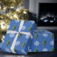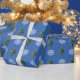 Snowflake Tree with Snow Christmas Holiday Wrapping Paper. Beautiful white snowflake and trees with snow on a blue background.