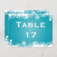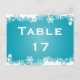 Snowflake turquoise winter wedding table number postcard
