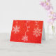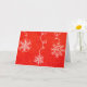 My original digital artwork is featuring graphic art snowflakes seemingly floating through in a whimsical style while snow is covering the remainder of the red card, for a festive, nostalgic and retro appearance. The inside of the card states "May the magic of Christmas fill your home with peace and joy! Merry Christmas!". This pretty and joyful card would brighten up anyone's season, especially those who enjoy vintage, retro or snow designs.