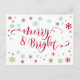 Snowflake Whimsy Merry & Bright Red Typography Holiday Postcard