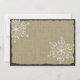 Rustic country faux burlap design with white snowflakes for a warm country winter wedding. Change text as needed.