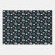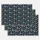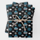 Wrapping paper sheets featuring a snowflake and curling rock pattern in blue, white and grey on black background. Perfect for curlers and curling fans.