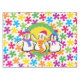 Snowflakes and Penguins Winter Holiday tablecloth, cute, colourful, and so much fun for the holiday season! Features three happy penguins wearing winter hats and striped scarves on a background of yellow and green with white polka dots, and a background with lots of bright snowflakes of red, purple, hot pink, yellow, green, blue, and orange!