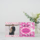 Spread your holiday cheer to friends and family starting with this unique whimsical Snowflakes and Reindeer Christmas holiday photo card featuring a pink background with white snowflakes and text that reads Merry Christmas, pink stars, a white silhouette reindeer with antlers decorated with ornaments, holiday ornaments, and areas you can add your first names, surname, the current year, and your photo!