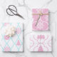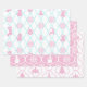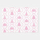 Icons of Christmas in pink and white; snowflakes, snowmen and Christmas trees.