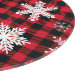 Snowflakes dance on buffalo plaid, creating a festive winter illustration.