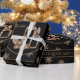 Snowflakes Candles Holly Black and Gold Christmas Wrapping Paper