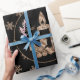 Snowflakes Candles Holly Black and Gold Christmas Gift Wrapping Paper with custom name and text, Elegant Holiday Season Gift Wrap with snowflake pattern
