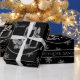 Snowflakes Candles Holly Black Silver Christmas Wrapping Paper