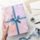 Snowflakes Christmas Holiday Marble Pink Blue Peac Wrapping Paper