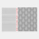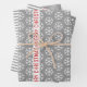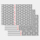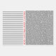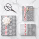 Snowflakes, Christmas trees and stripes grey kraft paper Wrapping Paper Sheets. One sheet displays a cute pattern of snowflakes and stripes on kraft paper. The second features snow and the third white trees. There also is the text "Merry Christmas" in red on a white band on all sheets. Personalise it with your text.