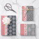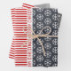 Snowflakes, Christmas trees red stripes grey Wrapping Paper Sheet