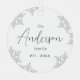 Personalized Christmas family ornaments feature elegant trendy family name script and snowflakes in light gray, black and white, optional family photo on the back, modern and simple.