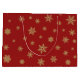 A snowflake vector digital design with gold snowflakes on a dark red background.