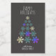 Stylish and festive jar label for Christmas holiday time with a Happy holidays wish. Snowflakes in different colours in the shape of a Christmas tree are on the dark grey or black background. The text is in white colour. Personalise the label with your text, greeting and name. Elegant Christmas present for your friends, family, co-workers, ...
