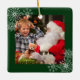 Square ornament with photo with stylish snowflakes. Features Merry Christmas in script and family name and year on the back. Lovely keepsake to hang on your tree or to send to family and friends at the holidays.
