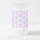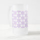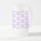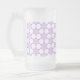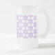Frosted 16 oz mug with repeated red-violet snowflake pattern.