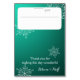 DIY folding printed seating place card with pretty white snowflake design to compliment our green wedding invitation set, can be personalised and ordered individually.