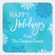 This elegant sticker is ideal to celebrate the Holiday Season. It features floating snowflakes in white and shades of blue. The textured background adds a soft feel. It includes the words “Happy Holidays”. This sticker is perfect to complement your holiday mailing. Also available are matching Holiday Card, Postage Stamp and Address Label.