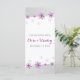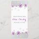 Elegant modern purple snowflakes and silver grey stars wedding menu card showcasing stylish purple snowflakes and silver grey or grey stars on white background.