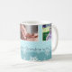 Merry Christmas grandma custom photo mug in stylish shades of light blue and white in a delicate snowflake pattern with customisable text and photo, perfect as a holiday gift.