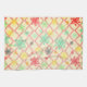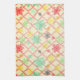 A yellow background with dark pink trellis is the backdrop for snowflakes! Yellow, red, green, teal and black snowflakes. A beautiful towel that will work hard for you in the kitchen as a kitchen towel or as a decorative piece.