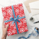 Wrap your gifts with this oh so cheerful wrapping paper featuring a scatter of white snowflakes on a classic and bright Christmas red background and dress your gifts in holiday cheer this season.