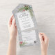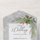 Are you planning a winter wedding and searching for the perfect invitation that captures the enchantment of falling snowflakes? This All-in-One wedding invitation, featuring delicate snowflakes gracefully descending on a pale grey background with delicate pine branch details, is the ideal choice. It combines the beauty of winter with the convenience of an all-in-one design, ensuring a seamless and stylish invitation experience. The addition of the QR code allows your guests to easily access your wedding website for information including reception details and dinner choices!