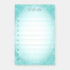 Snowflakes on light turquoise blue gradient lined Post-It Notes.