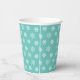 Elegant white snowflakes on teal Party Paper Cups. Text can be personalised for Christmas, Birthday and more. Great for Christmas and winter season.