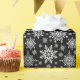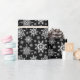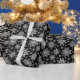 White snowflakes on Black wrapping paper. A seamless pattern of snowflakes in different designs and shapes make this timeless, classic and traditional wrapping paper. A elegant winter design, minimalist and simple. Snowflakes in an illustration fitting for the Holiday season, festive events and Christmas.