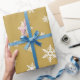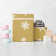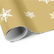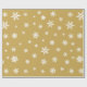 A snowflake vector digital pattern with white snowflakes on a gold background.