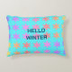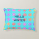 Snowflakes Patterns Hello Winter Typography Blue Decorative Cushion