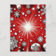 A beautiful red background surrounded by baubles and snowflakes in pop art style