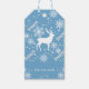 Elevate your holiday with our Christmas gift tags, featuring a charming design of white reindeer and snowflakes on a blue background. Ideal for both casual and formal gatherings, they offer convenience without sacrificing holiday cheer.