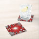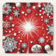 A beautiful red background surrounded by baubles and snowflakes in pop art style