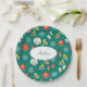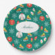Snowflakes Teal Monogram Pattern Christmas Party Paper Plate