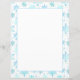 A holiday letter writing paper stationery for the winter season decorated with watercolor snowflakes in a variety of blue shades and a speckle background for falling snow.