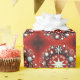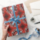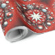 A beautiful red background surrounded by baubles and snowflakes in pop art style