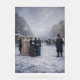 Inspired to the art of Maestro De Vity. This print shows a group of elegant people under the snow in a late 1800 Parisian night