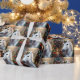 A majestic white unicorn stands gracefully beside a towering Christmas tree, its pristine coat gleaming like freshly fallen snow under a soft bokeh glow. Its mane cascade in silky waves, adorned with delicate holy, The unicorn’s horn spirals upward, shimmering faintly with a pearlescent glow, as if imbued with holiday magic.