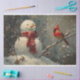 Snowman and a Cardinal Oil Painting Decoupage Tissue Paper