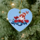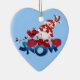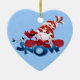 A snowman with red mittens and a red and white hearts hat enjoys the day with his friend the red cardinal and text reads "SNOW" on a porcelain Snowman and Cardinal holiday keepsake ornament.