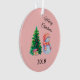 image of a green christmas tree with red baubles and two presents. image of snowman has a pink and orange striped hat and scarf and two pink buttons. all text can be changed. background colour can be changed.