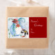 Whimsical,colourful original pastel painting in blue white red colours,snowman and penguin playing violin in winter snow with red flowers,flourishes.by Bulgan Lumini (c)