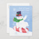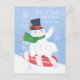 A happy Snowman sits upon a peppermint disc as he slides down a snowy hill. Original illustration by Noël Snow.